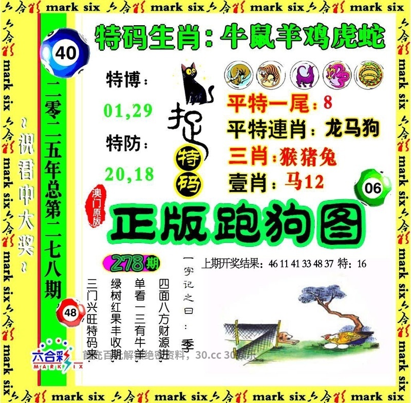 257期【⑦肖中特】:狗虎羊马鼠鸡猴